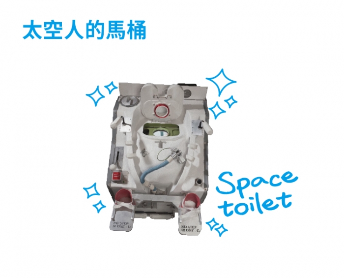 太空馬桶像是吸塵器,利用不同的氣壓把固體排泄物吸走,並存在一個膠囊,帶回地球丟棄。液體排泄物則利用一特殊設計的漏斗,附上軟管接頭,排尿時,風扇會把尿液吸進廢水槽,太空人評論:「男女生用的感覺不一樣,通常對女性來說比較好用。」