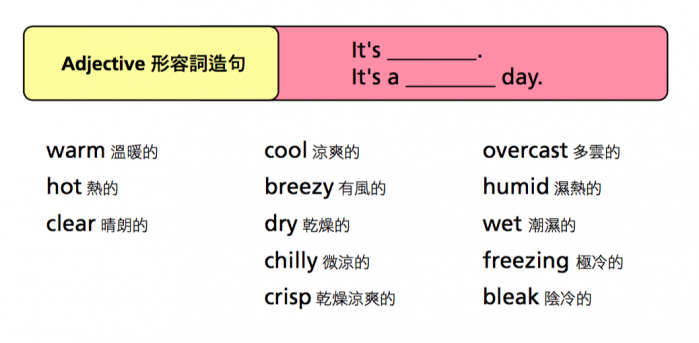 3 種詞性,用英文「聊天氣」 偶爾的寒暄,是話題的開始,如果真想不到話題,天氣會是一個好開始,不同詞性都能造出形容天氣的句子。