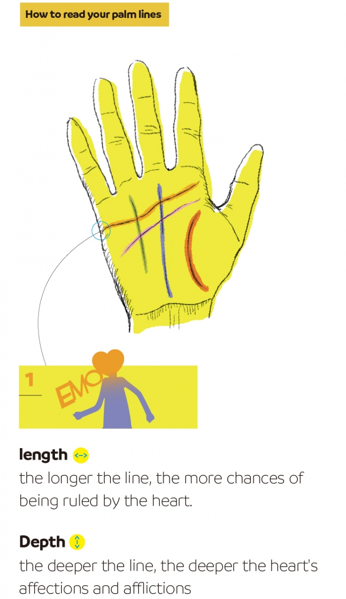 感情線越長、越深,越容易聽從心的支配:
