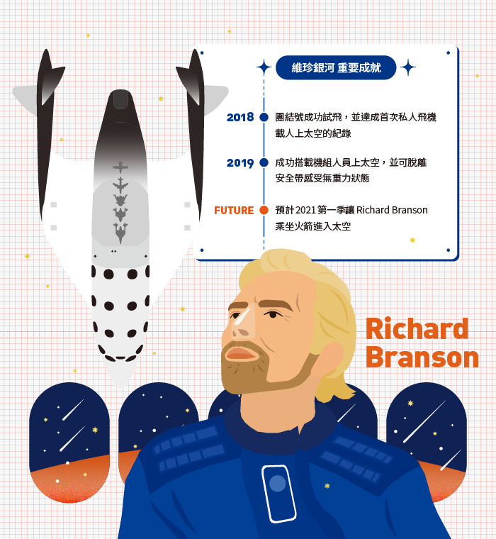 成立航太旅遊公司維珍銀河,成為全球首間太空旅遊業—Richard Branson