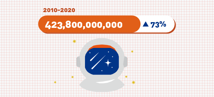 全球太空經濟規模已成長至 4,238 億美元,在過去10年間成長了73%